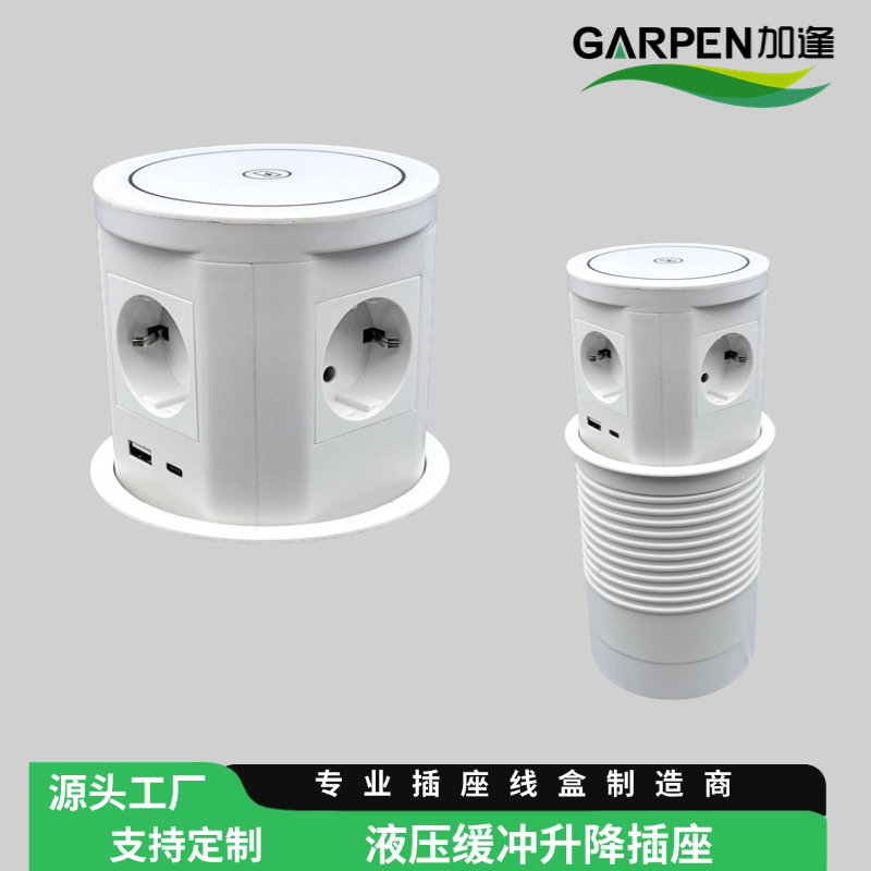 跨境专供按压欧规插座气动升降插座嵌入式桌面隐藏中岛台办公桌插