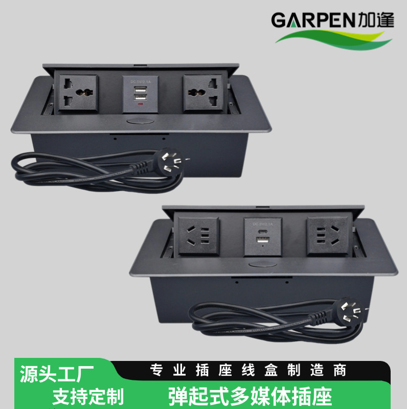 弹起式桌面插座新国标美式英式多功能隐藏插座USB+Type-C充电插座