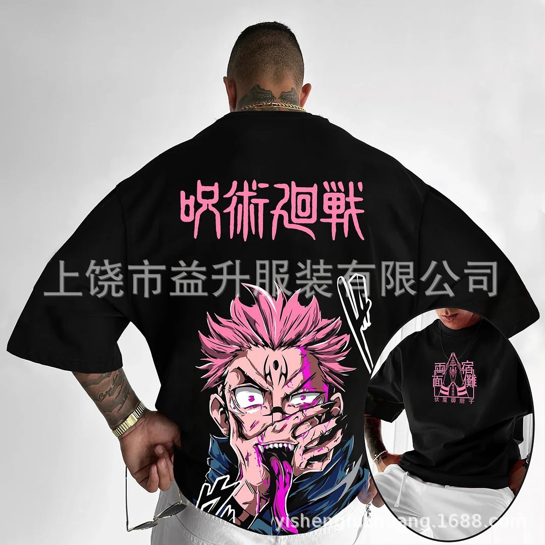 2025新款跨境时尚舒适休闲短袖 咒术回战卡通印花圆领3D短袖T恤