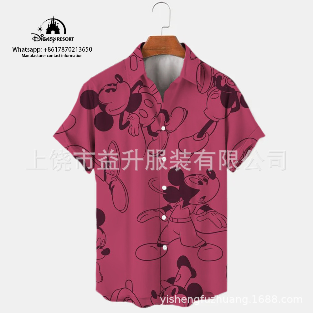 夏季户外舒适个性潮流衬衫 3D米老鼠卡通数码印花休闲男士衬衫