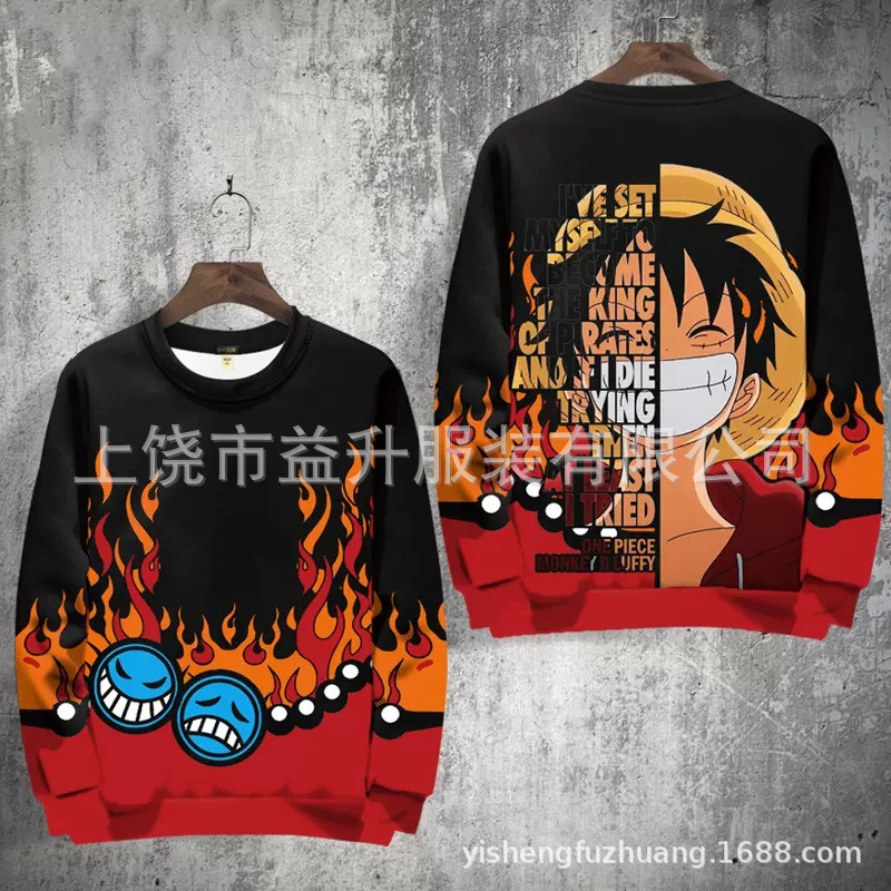 秋季休闲百搭海贼王长袖圆领上衣 高街时尚舒适套头圆领男士卫衣