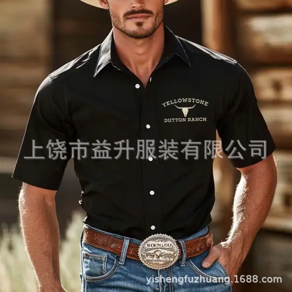 西部牛仔时尚休闲男士衬衫 夏季户外舒适个性潮流衬衫