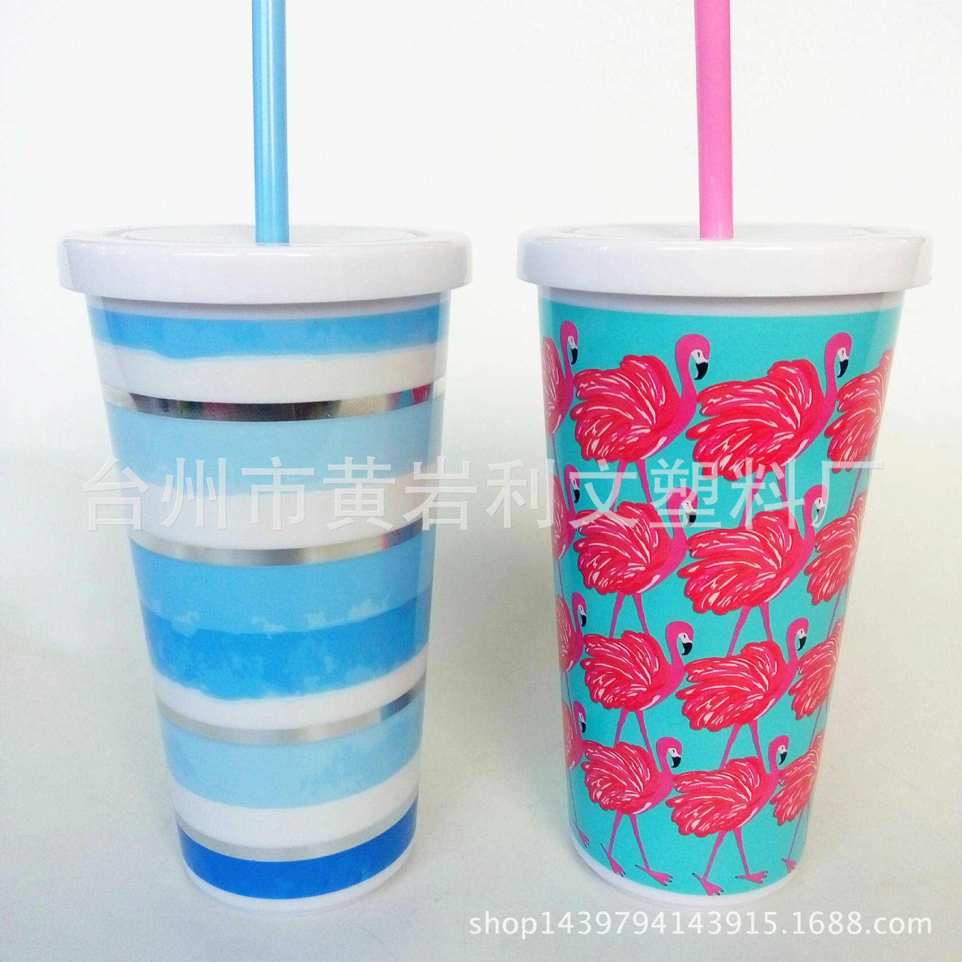可定450ML/16OZ电镀双层吸管杯 PS塑料杯 双层双色塑料杯 彩纸