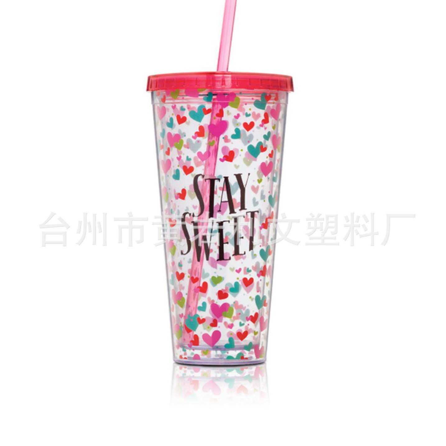 【厂家直销】创意礼品22oz大容量双层pS塑料咖啡杯情人节吸管杯