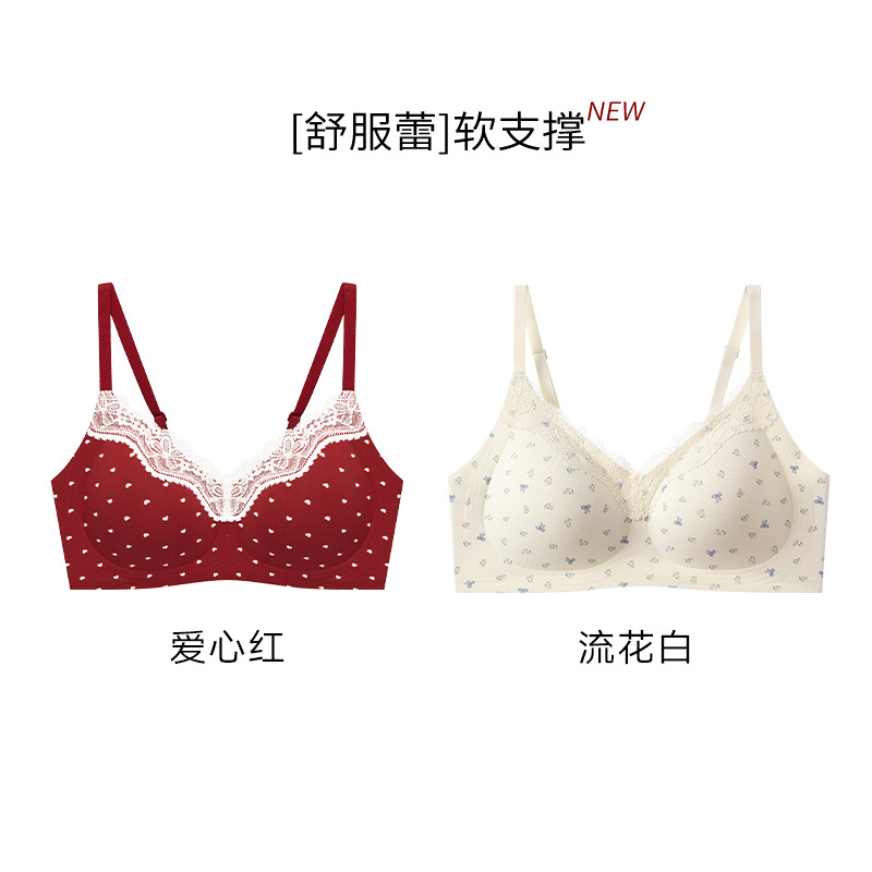 2件装日系无痕舒适薄款内衣女聚拢防下垂法式舒服蕾丝学生少女文