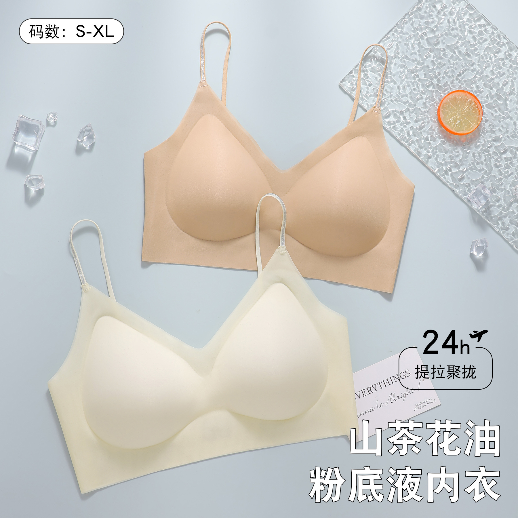 新款山茶花油细肩带贴肤提拉女士舒适无痕内衣透气固定杯吊带文胸