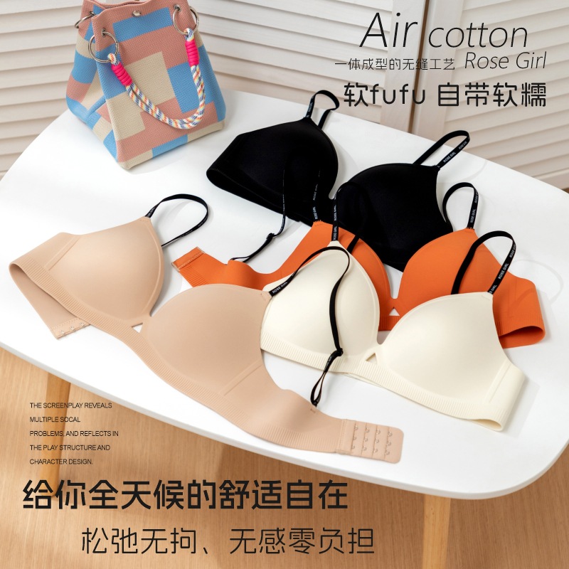 新款一体式薄款无痕无缝小胸提拉聚拢文胸字母细肩带内衣女防下垂