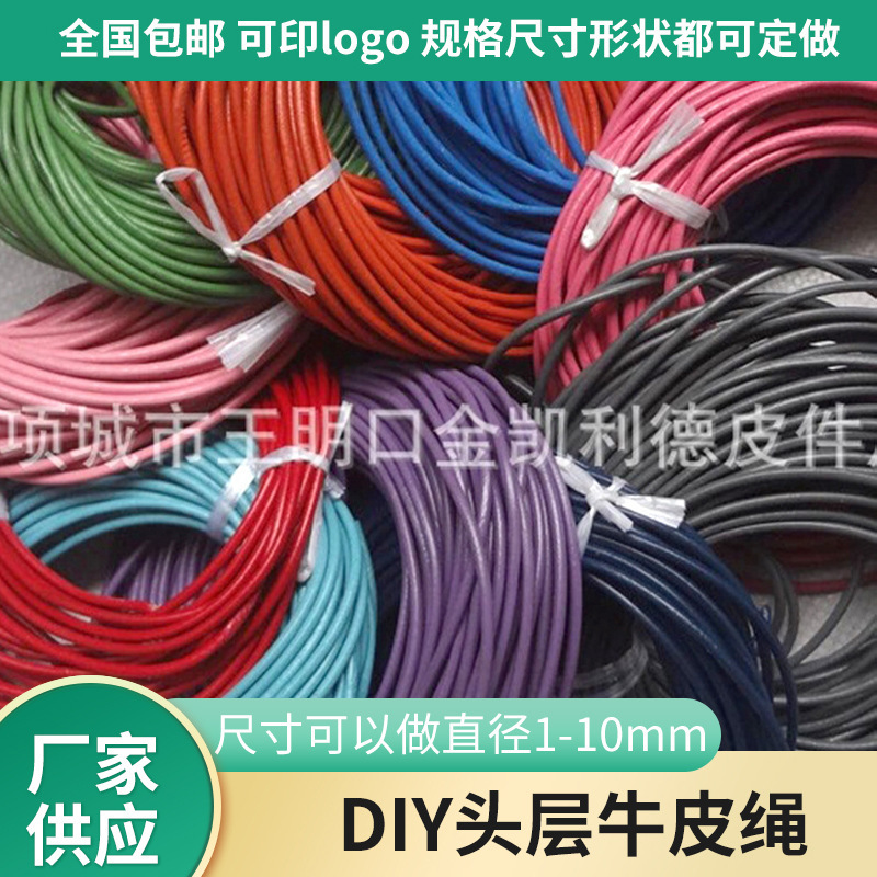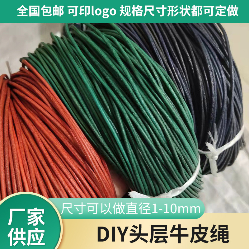圆形款彩色头层牛皮绳 首饰DIY手绳项链绳 可定制吊牌用牛皮挂绳