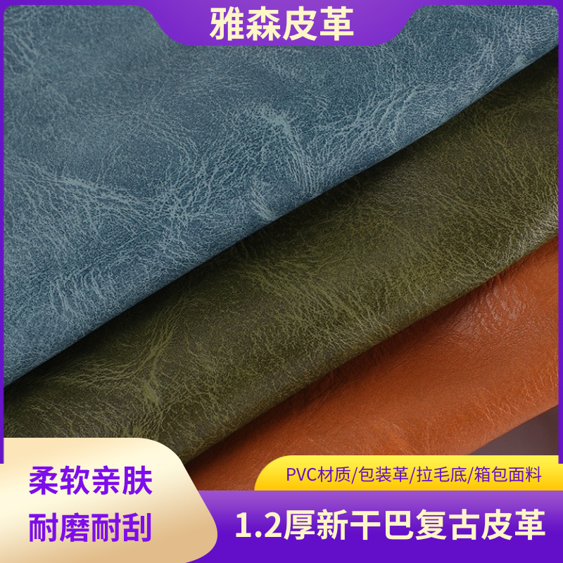 复古新干巴皮双色疯马纹PVC皮革1.2mm箱包手袋沙发包装革面料