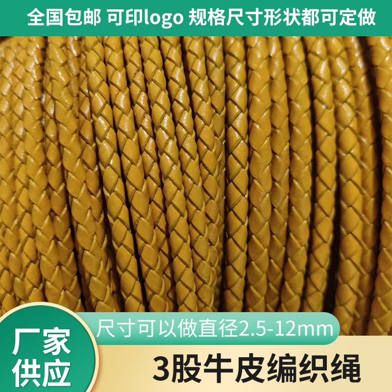 加工定制简约风服装鞋帽牛皮编织绳 手提箱包黑色四股牛皮编织绳