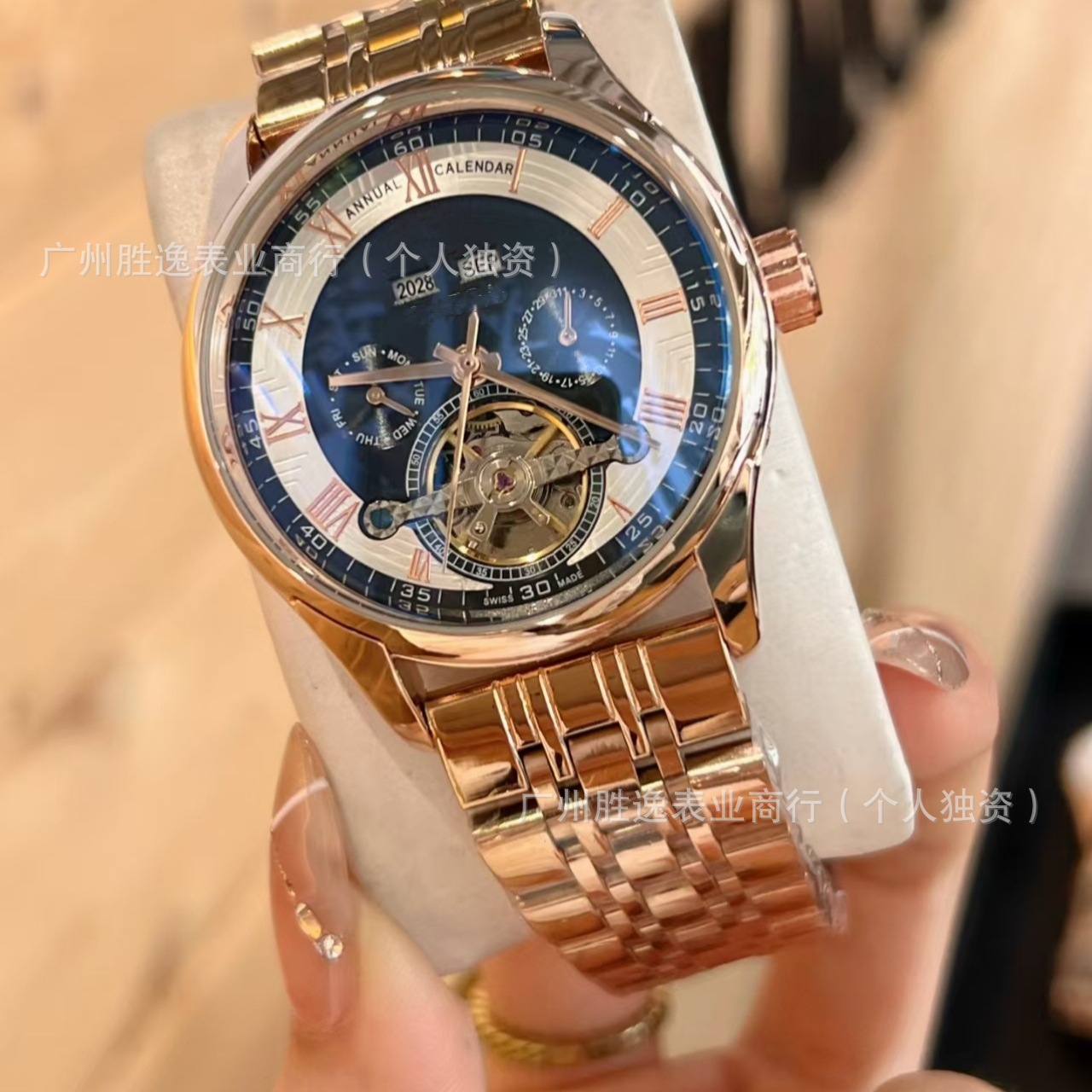 外贸电商欧家男款九飞轮全自动机械男商务男多功能钢带腕表蝶飞批