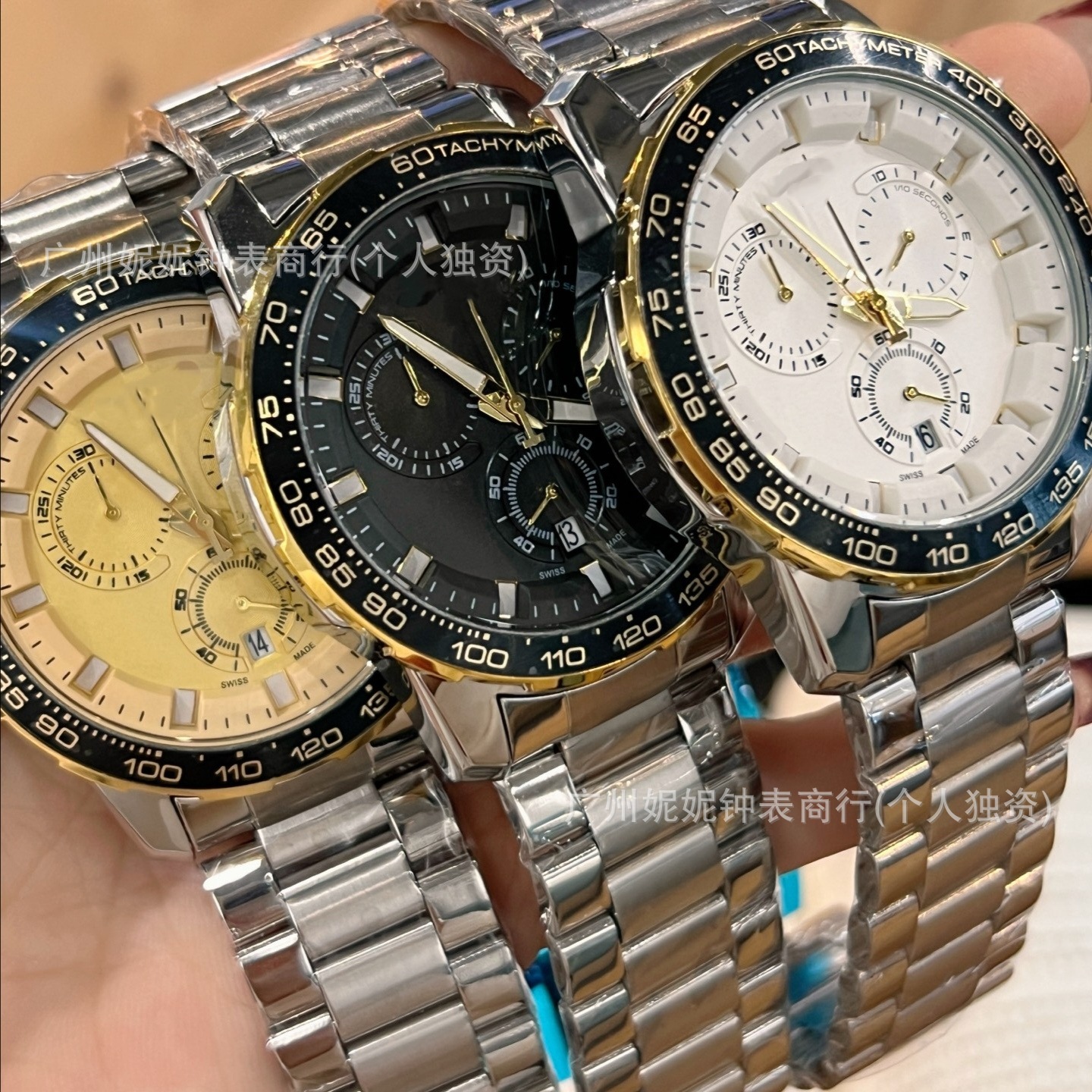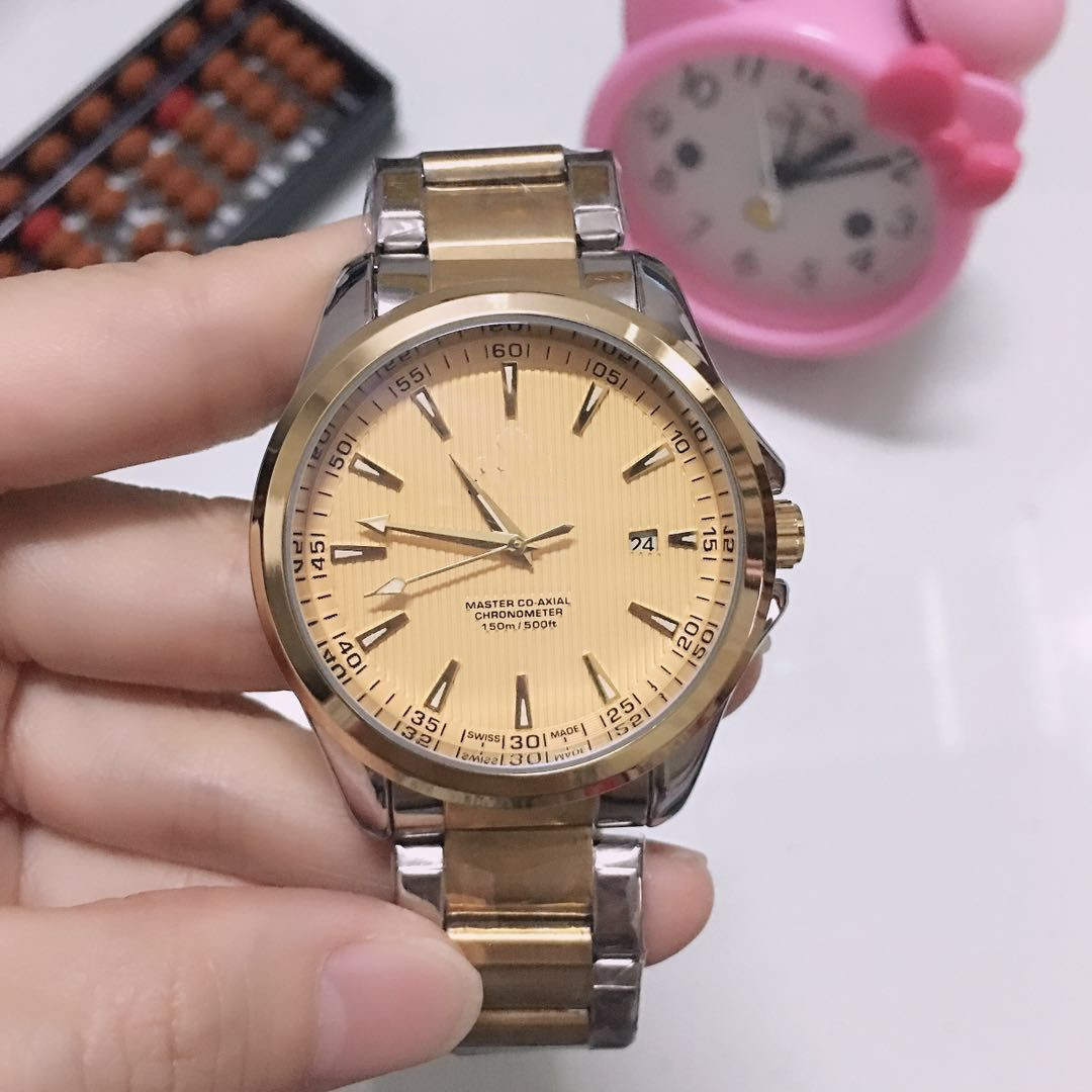 外贸热销精钢牙圈日志机械表五珠钢带手表带夜光男士表带日历批