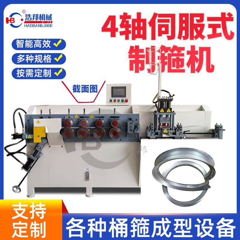 佛山厂家4轴伺服式制箍机冲孔抱箍成型机各种桶箍成型设备定 制