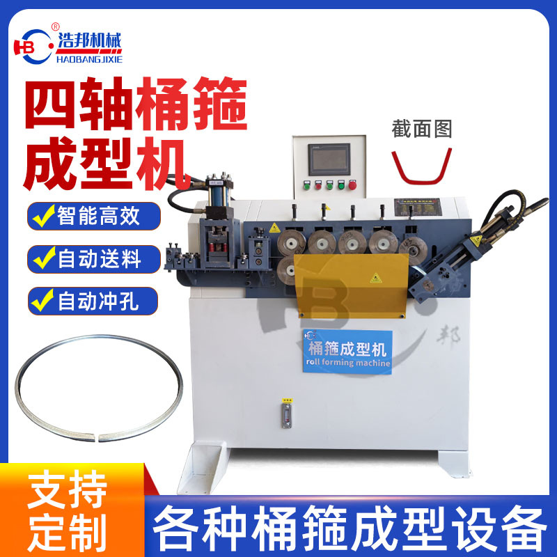 四轴桶箍成型机自动送料冲孔成型机适用夹紧环卡箍卷圆成型设备