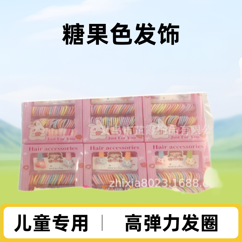 儿童皮筋糖果色高弹力发圈女童扎发头绳春季新款小发夹小女孩发饰