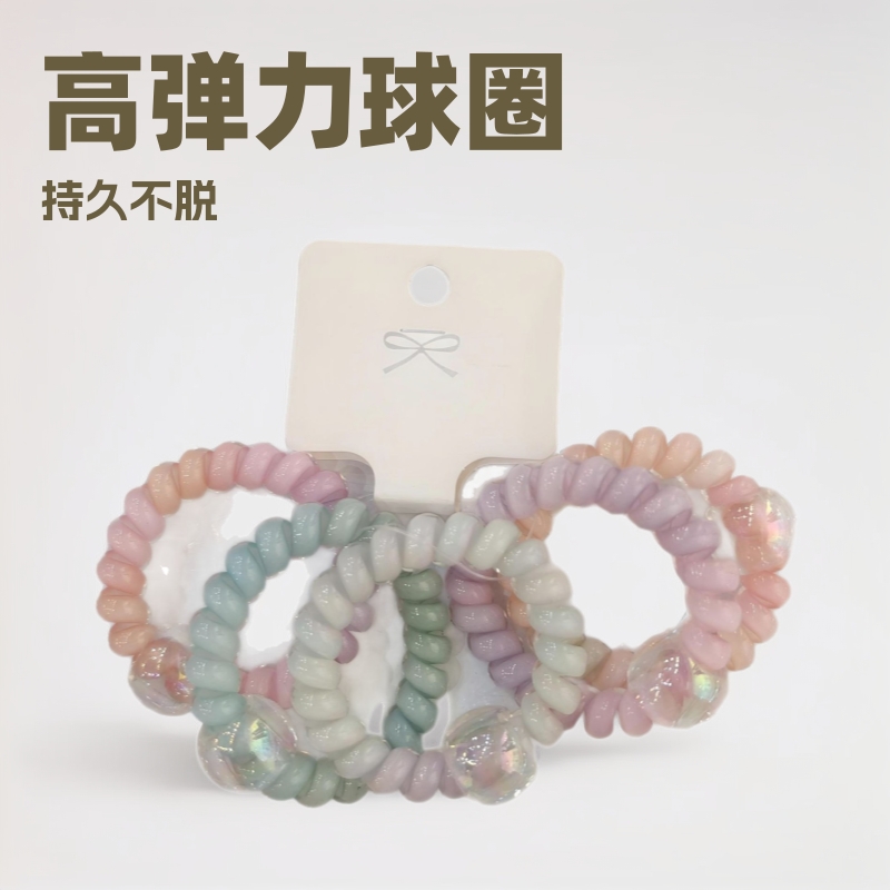 复古球电话线发圈女高弹力大肠圈清新百搭皮筋海边发饰韩版清新