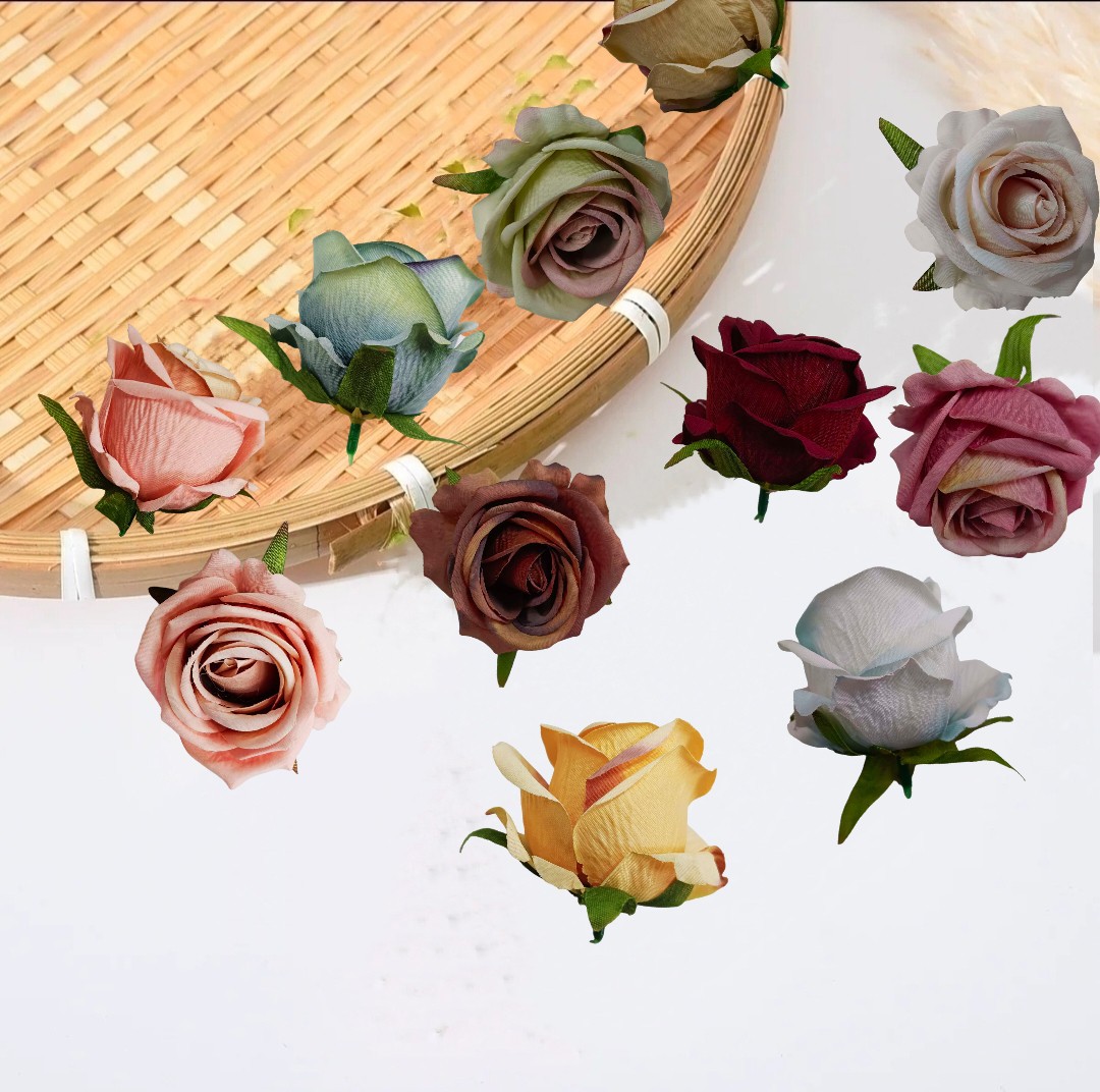 跨境小玫瑰花头假花diy花苞婚庆布置仿真花材料摄影拍照道具花卉