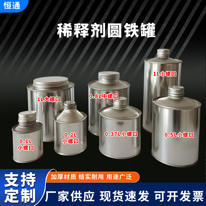化工试剂马口铁罐0.1L0.2L0.5L0.8L1L螺口盖圆形化工包装桶