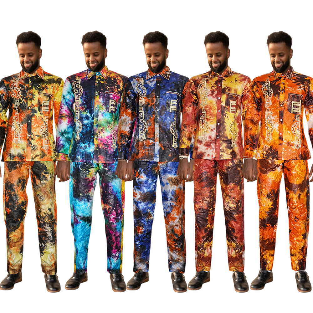 欧美外贸热销新款跨境热卖男装非洲时尚男士套装数码印花衬衫长裤