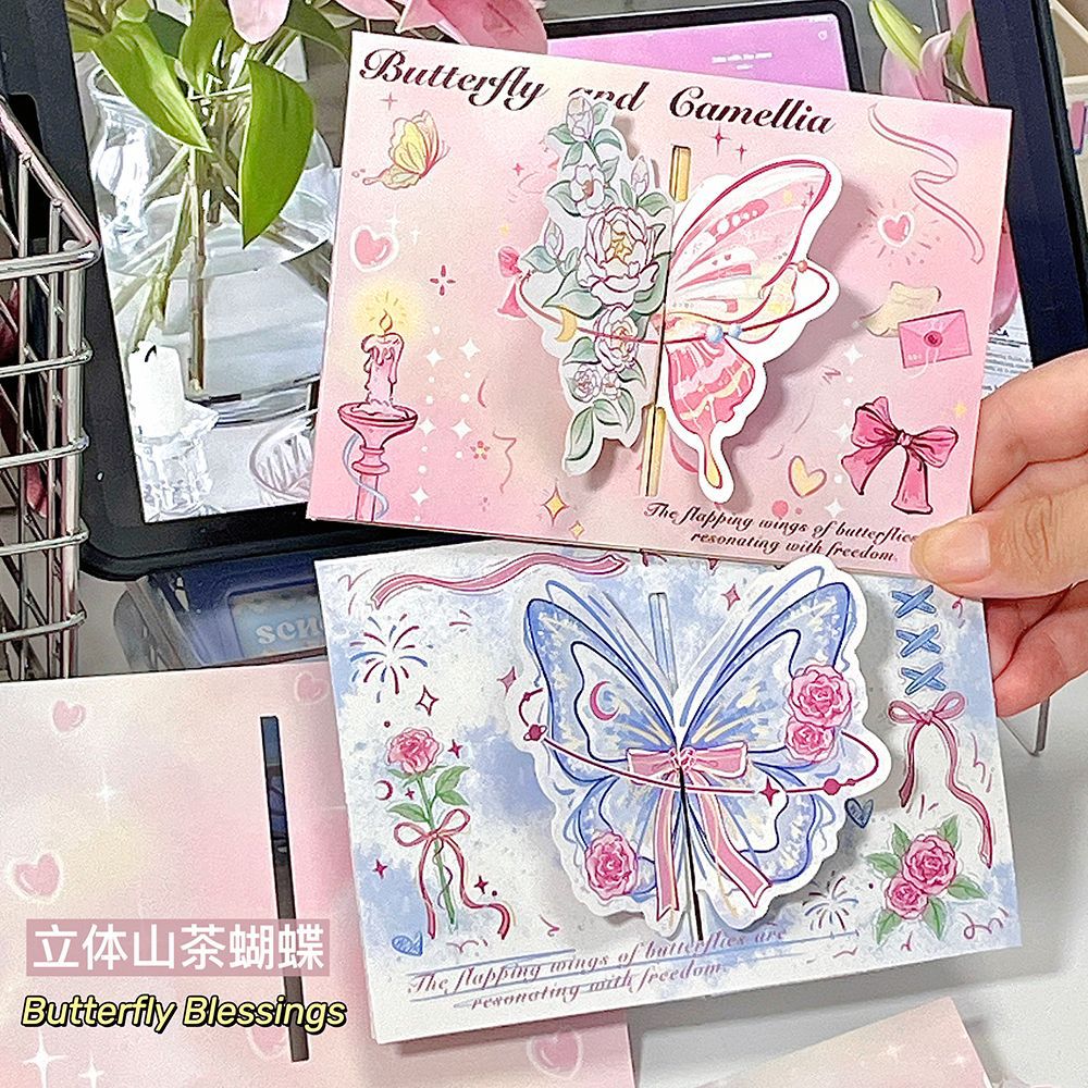 ins山茶花蝴蝶立体贺卡3d可折叠祝福留言贺卡生日礼物卡片送闺蜜