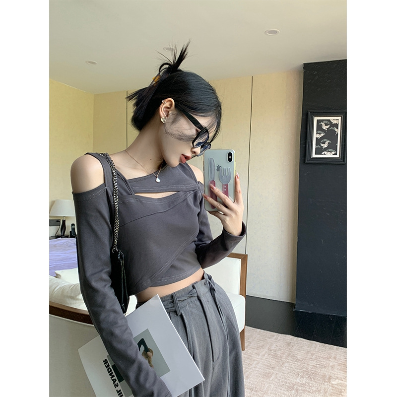 法式一字肩长袖春秋洋气减龄设计感气质高级感上衣女现货学院风
