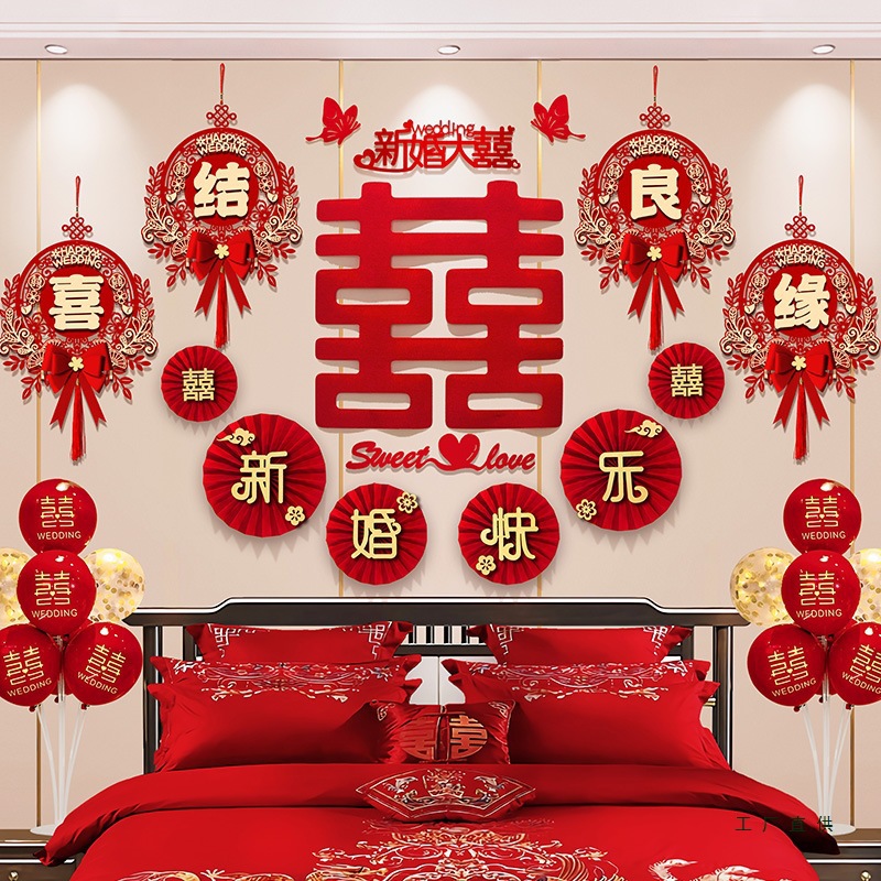 婚房布置套装新房卧室装饰婚礼男方房间主卧床头拉花结婚用品大全