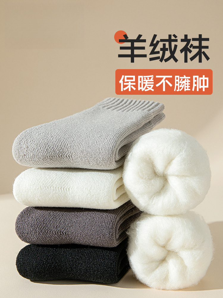 厚羊绒袜子男士秋冬款保暖中筒袜加绒加厚地板睡眠袜冬天羊毛长袜