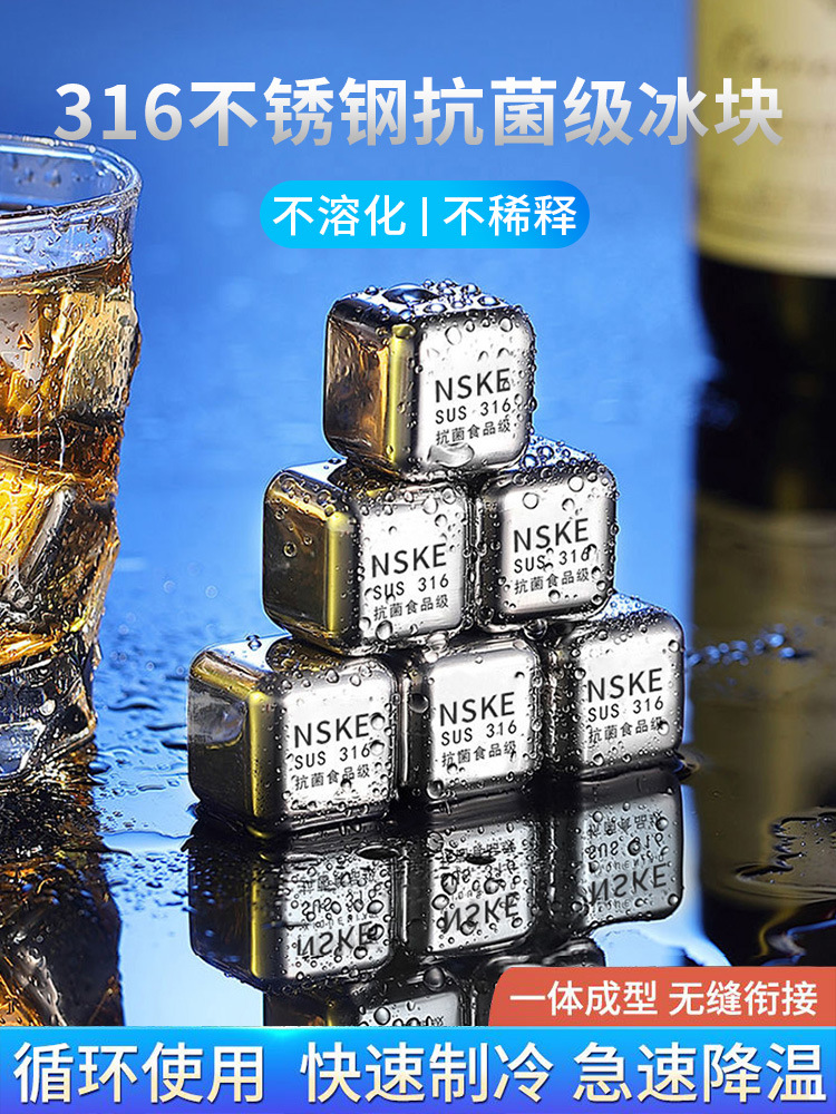 食品级316不锈钢冰块威士忌洋酒金属铁冰粒冰酒啤酒模具冰镇神器