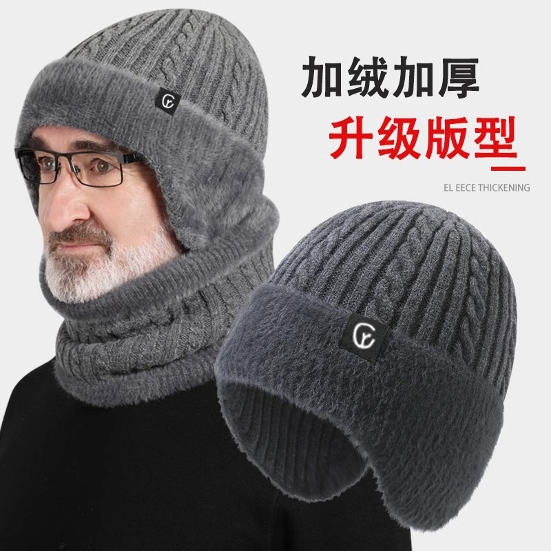 帽子男士冬季中老年保暖护耳针织加绒毛线帽冬季爸爸爷爷老人帽男