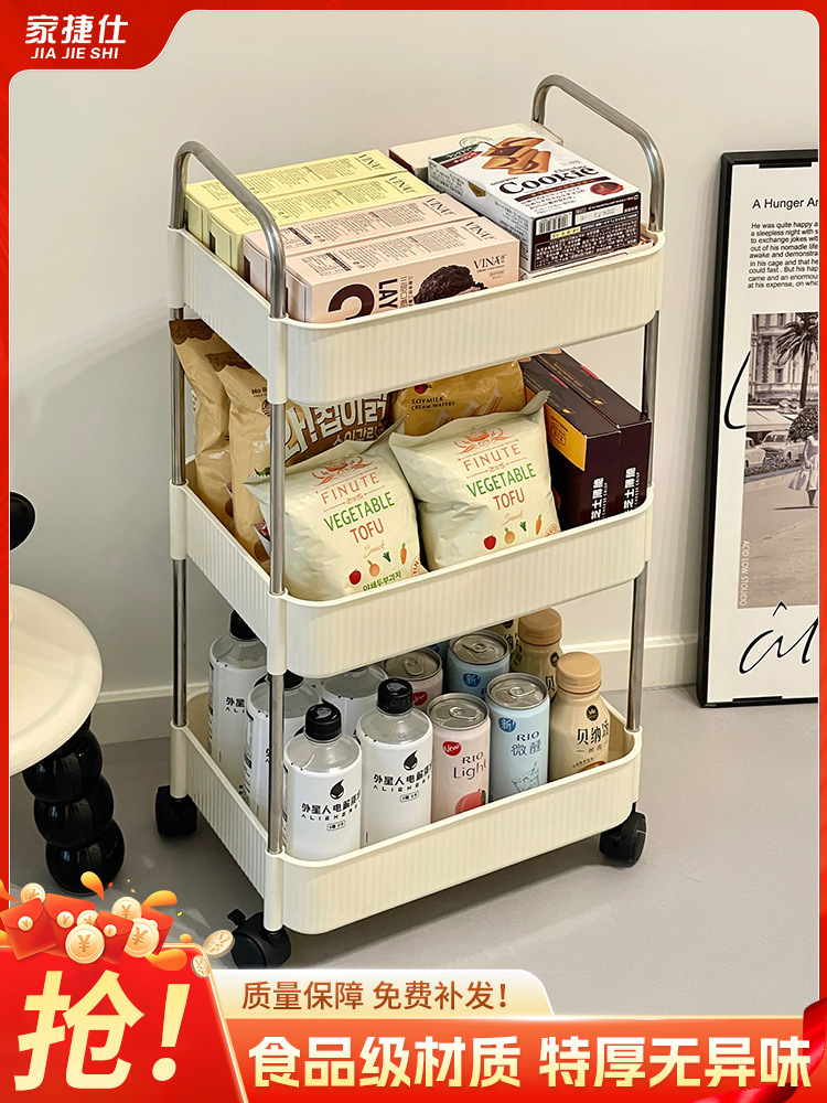 小推车置物架卧室带轮收纳架多层客厅移动落地简易玩具零食收纳架