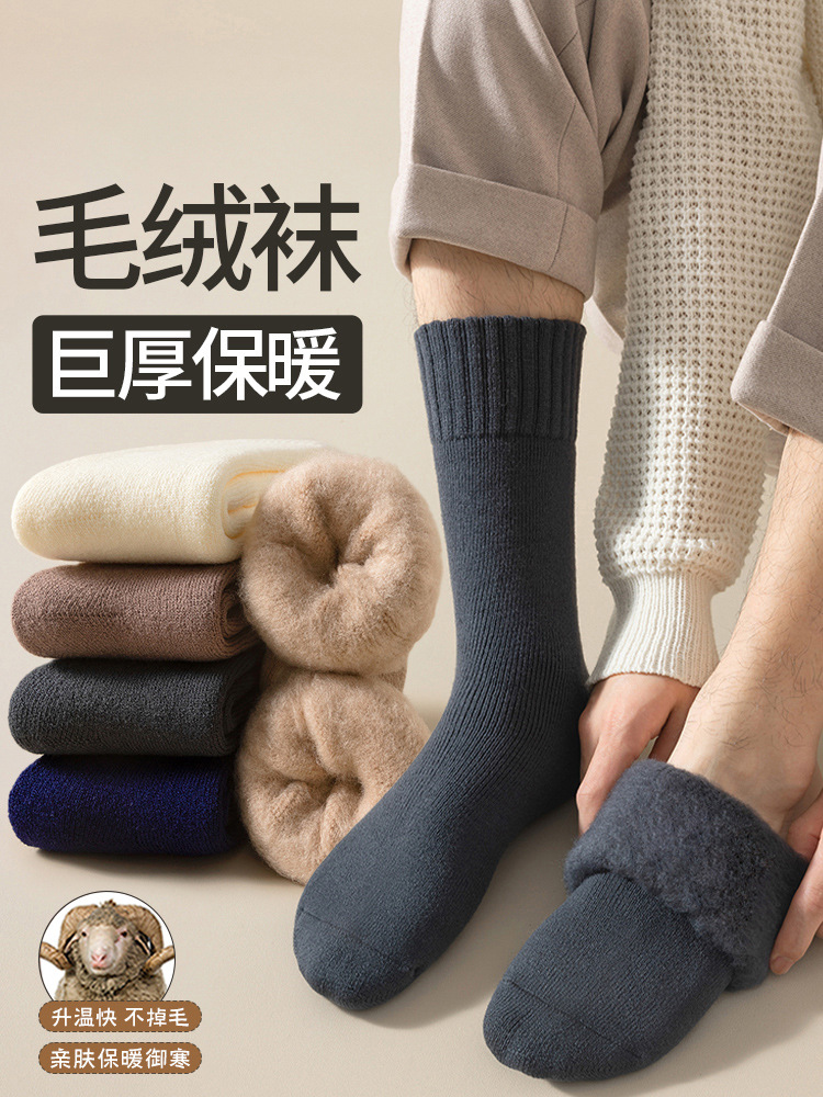 超厚仿羊毛袜子男秋冬加厚加绒长筒毛绒保暖中筒棉袜高筒冬季长袜