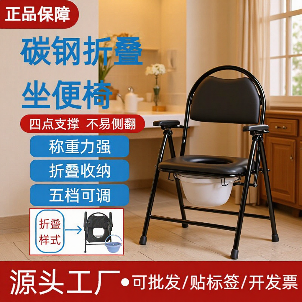 厂家批发老人孕妇室内可折叠坐便椅家用老年坐厕椅碳钢移动马桶凳