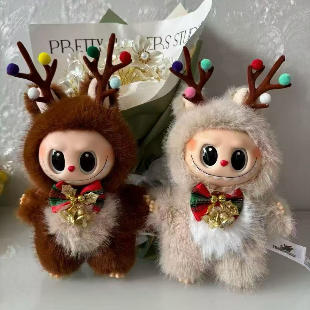 现货爆款圣诞节麋鹿毛绒公仔labubu可爱搪胶拉布布挂件玩偶娃娃机