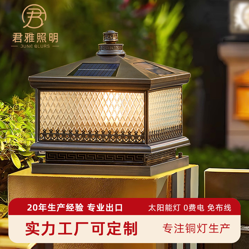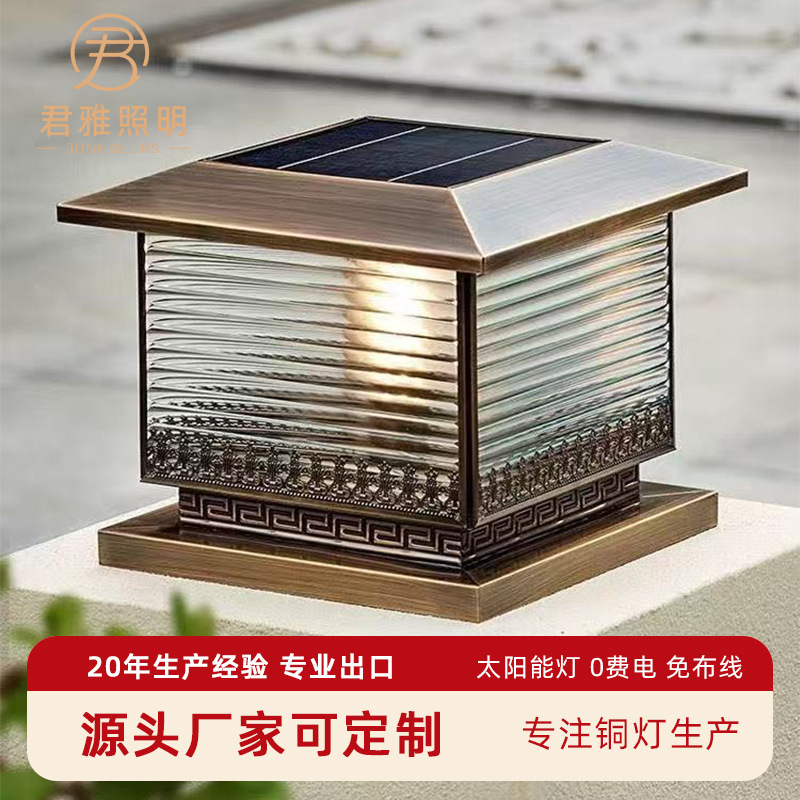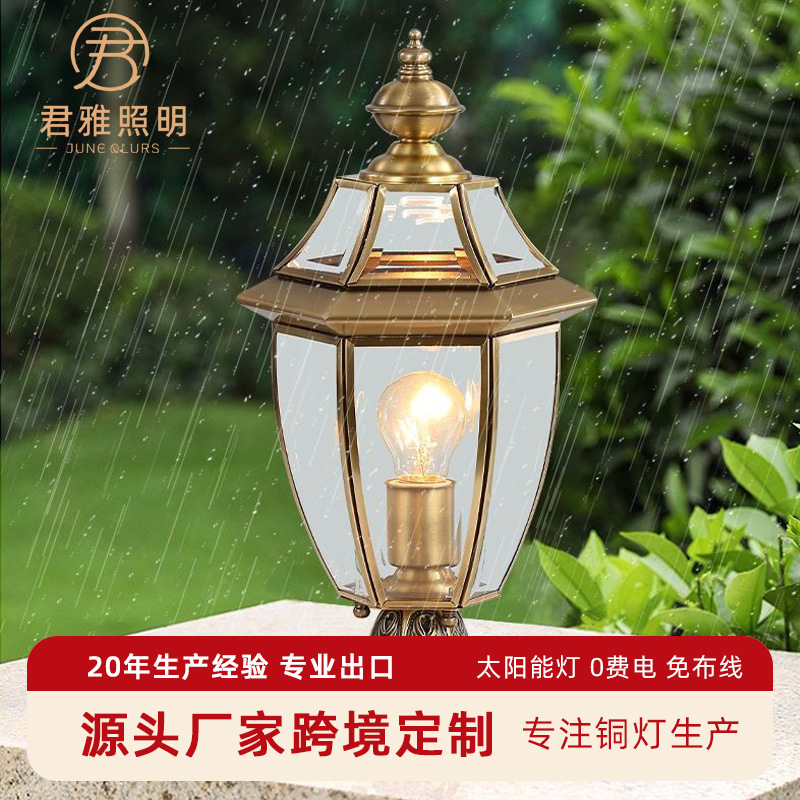 别墅户外柱子灯全铜防水庭院围墙接电照明灯花园太阳能门柱柱头灯