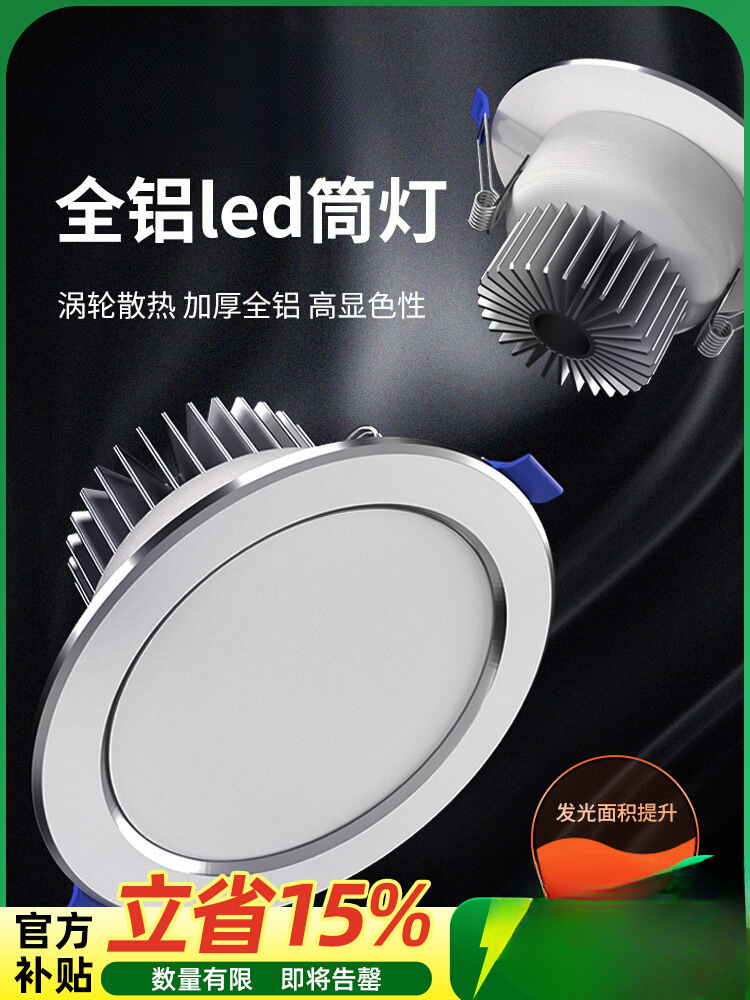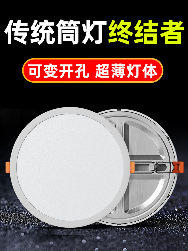led筒灯嵌入式超薄天花射灯孔灯家用方圆形格栅客厅玄关吊顶洞灯