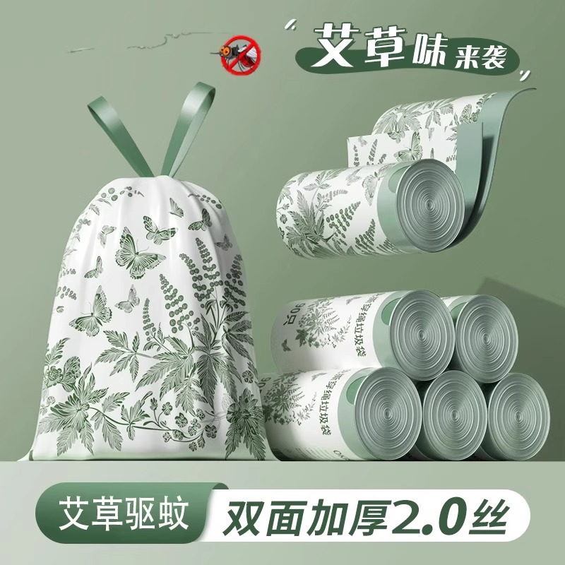 艾草实惠装加厚抽绳垃圾袋家用手提式黑色特厚超厚垃圾袋不招蚊虫