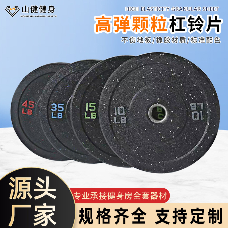 颗粒杠铃片商用健身房举重抗摔健身美体彩色高弹颗粒小孔哑铃片