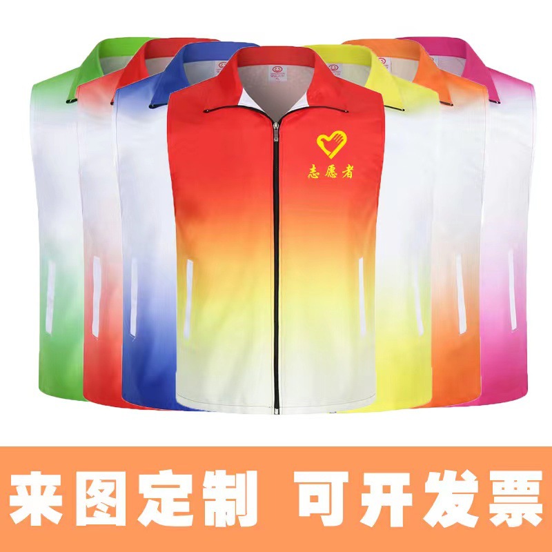 高品质全身印渐变广告活动工作服志愿者义工马甲背心logo定制印字