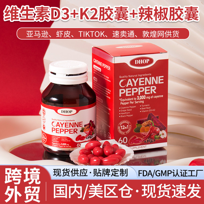 Cayenne Pepper辣椒葡萄籽胶囊 跨境姜黄甜菜根维生素D3+K2软胶囊