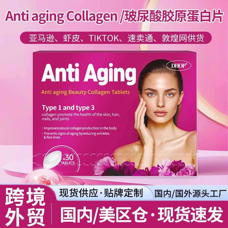 Anti-aging Collagen Tablets 跨境外贸现货玻尿酸胶原蛋白多肽片