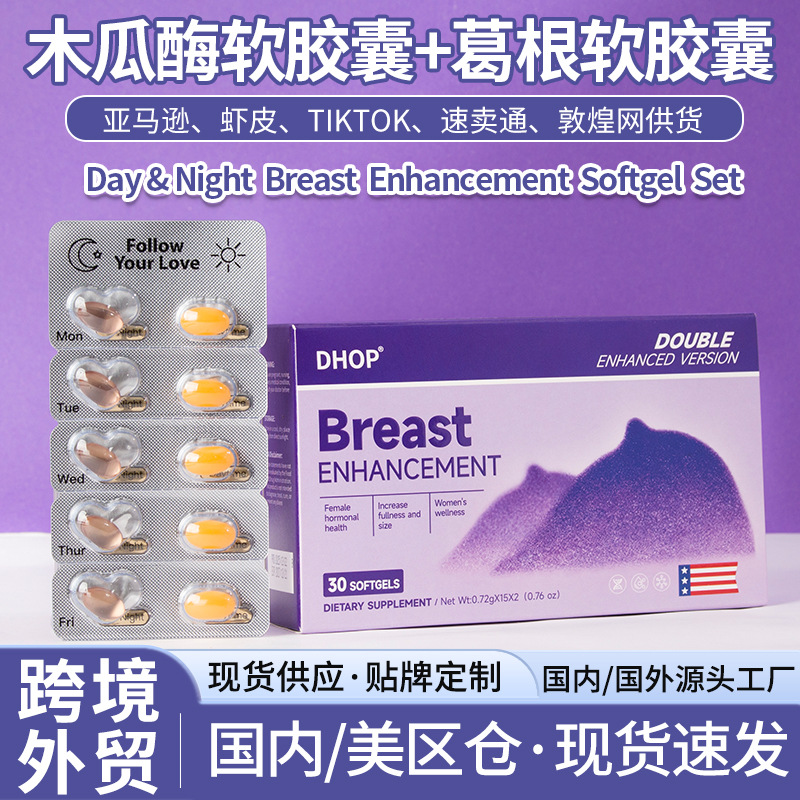 胸部胶囊Breast Enlargement 跨境oem日夜葛根木瓜酶胸部乳房胶囊