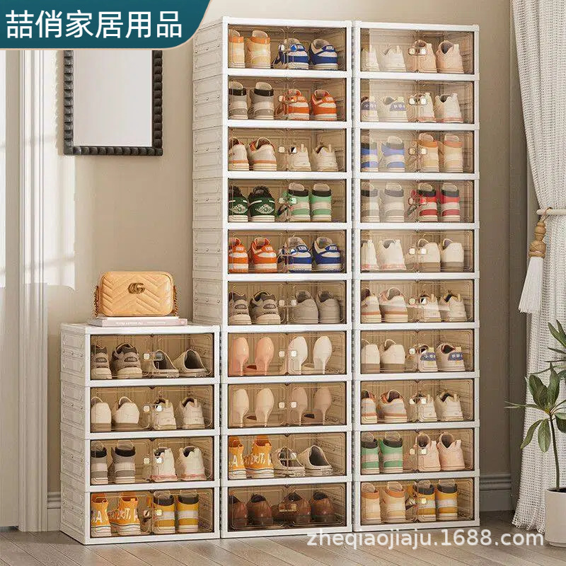 鞋盒收纳盒透明门口省空间家用鞋子收纳神器一体式折叠免安装鞋柜