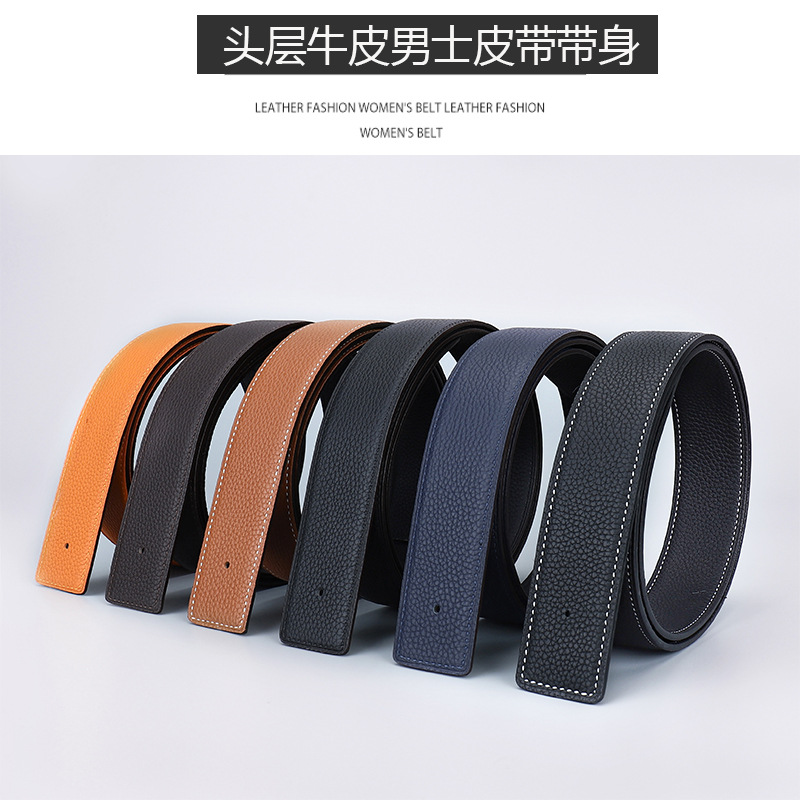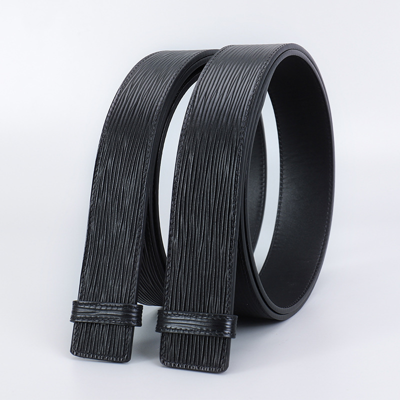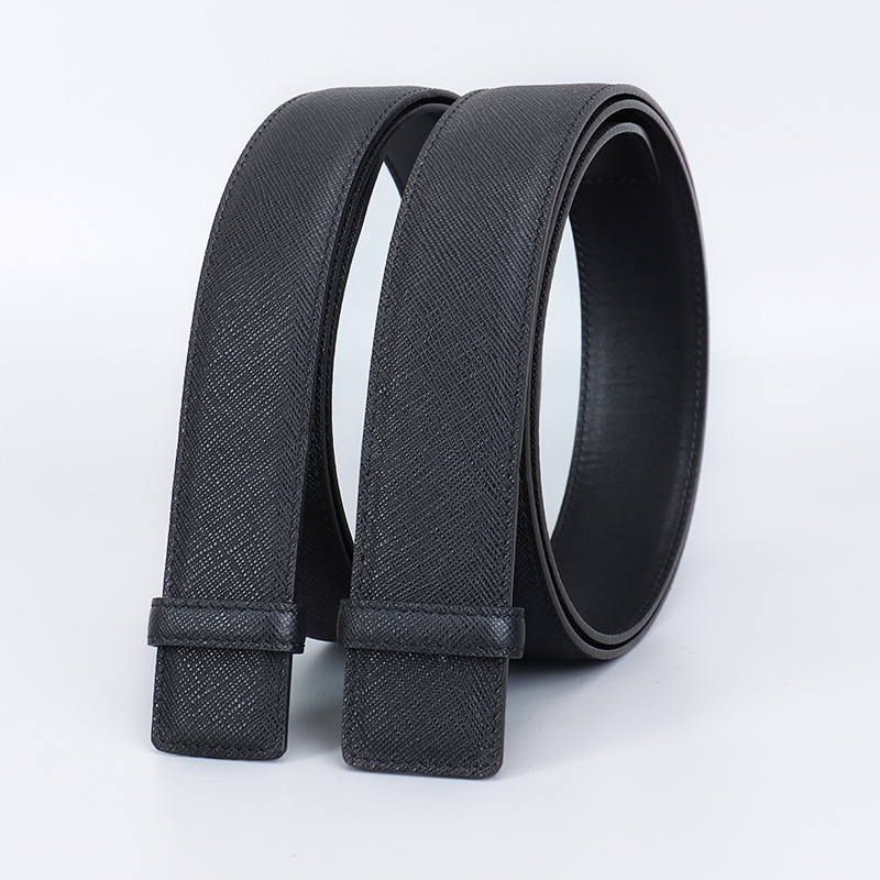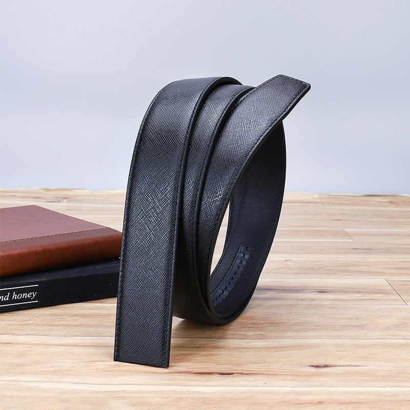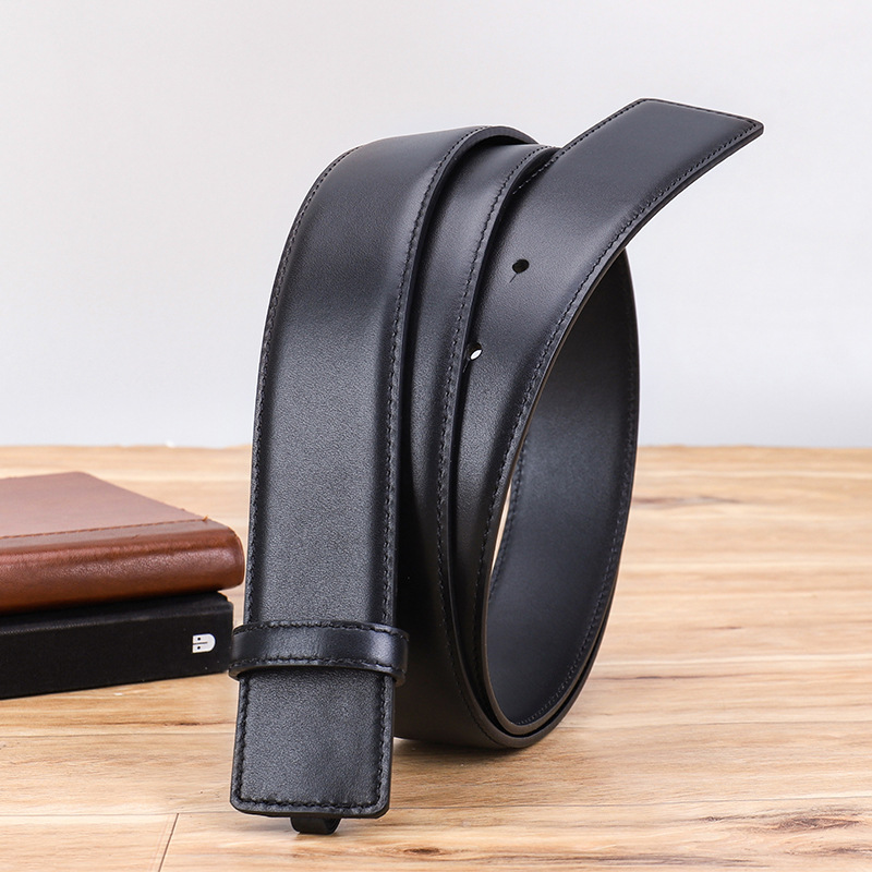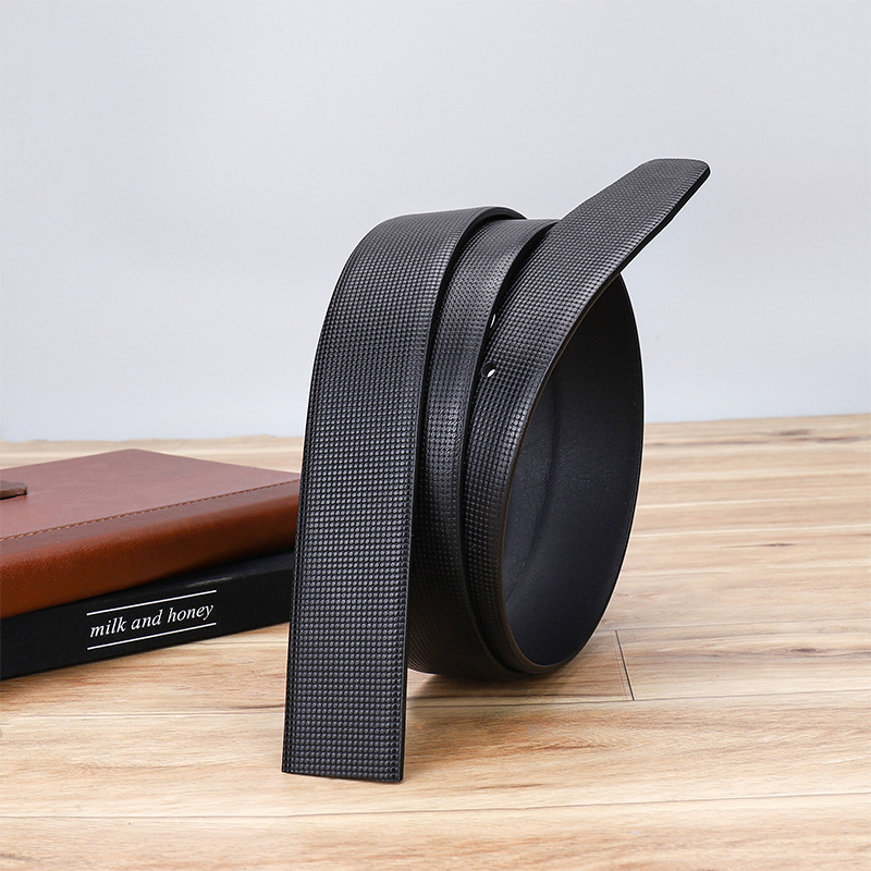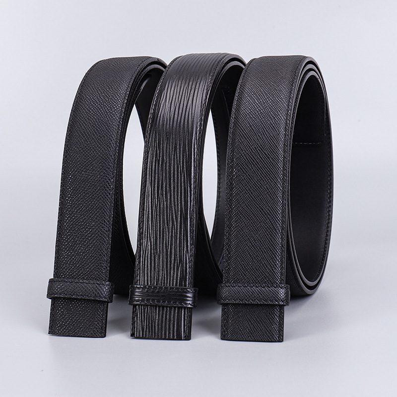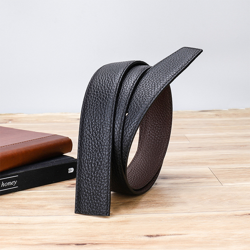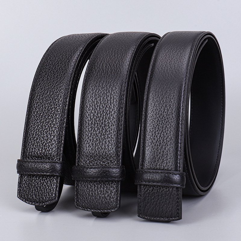 男款 3.8cm 宽腰带带身 头层牛皮荔枝纹 黑色无扣皮带外贸货源