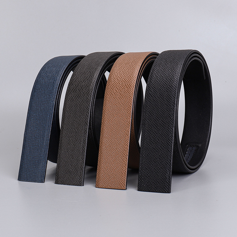 水波纹皮带带身厂家批发男士3.8宽头层牛皮按扣皮带带身无扣腰带