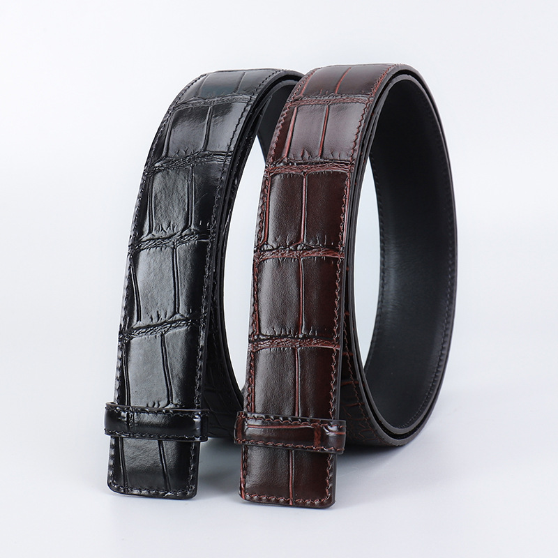 头层牛皮鳄鱼纹皮带带身3.4cm宽高品质可裁剪鳄鱼纹腰带无夹层