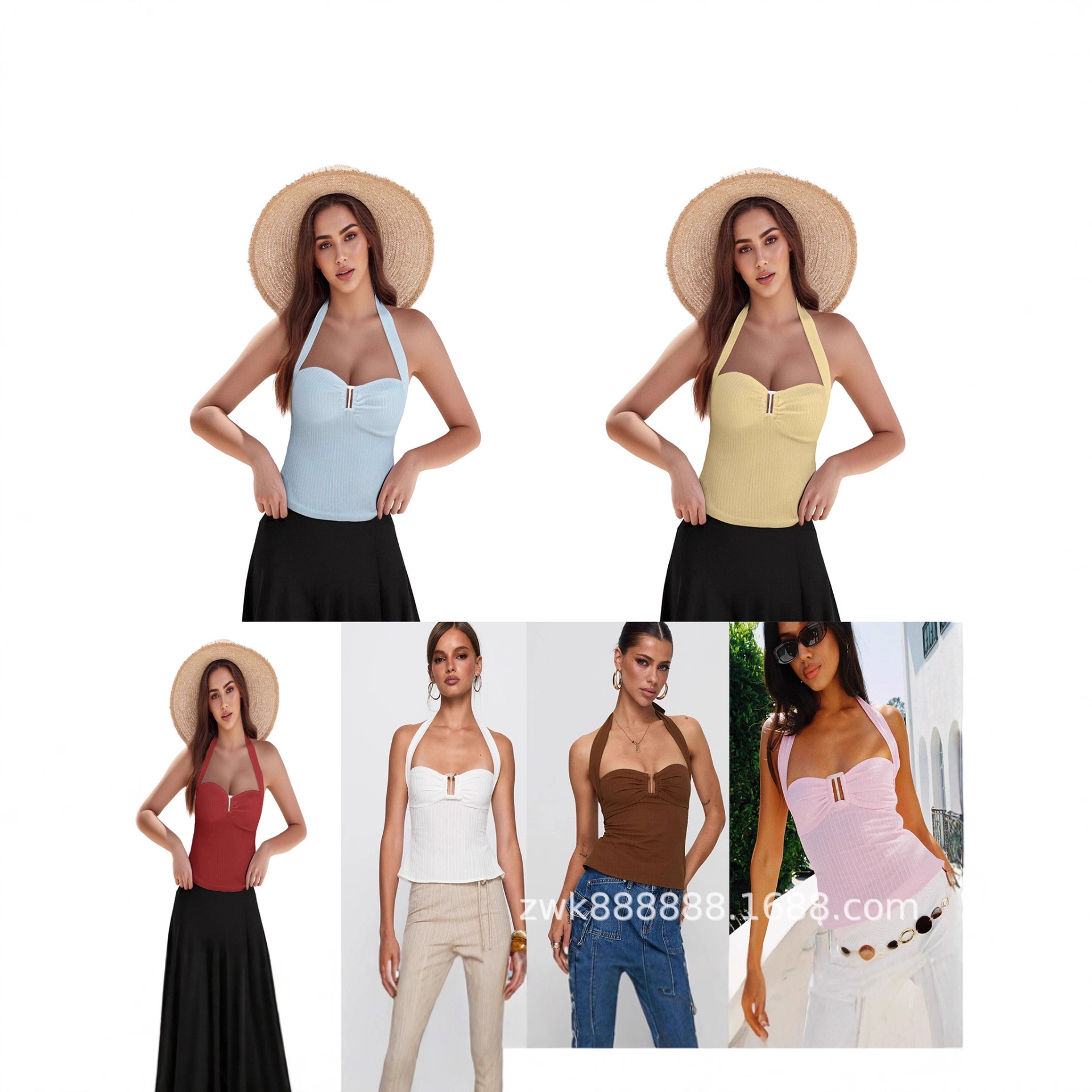 2025新款气质纯色短款挂脖修身无袖上衣女露背性感绑带背心