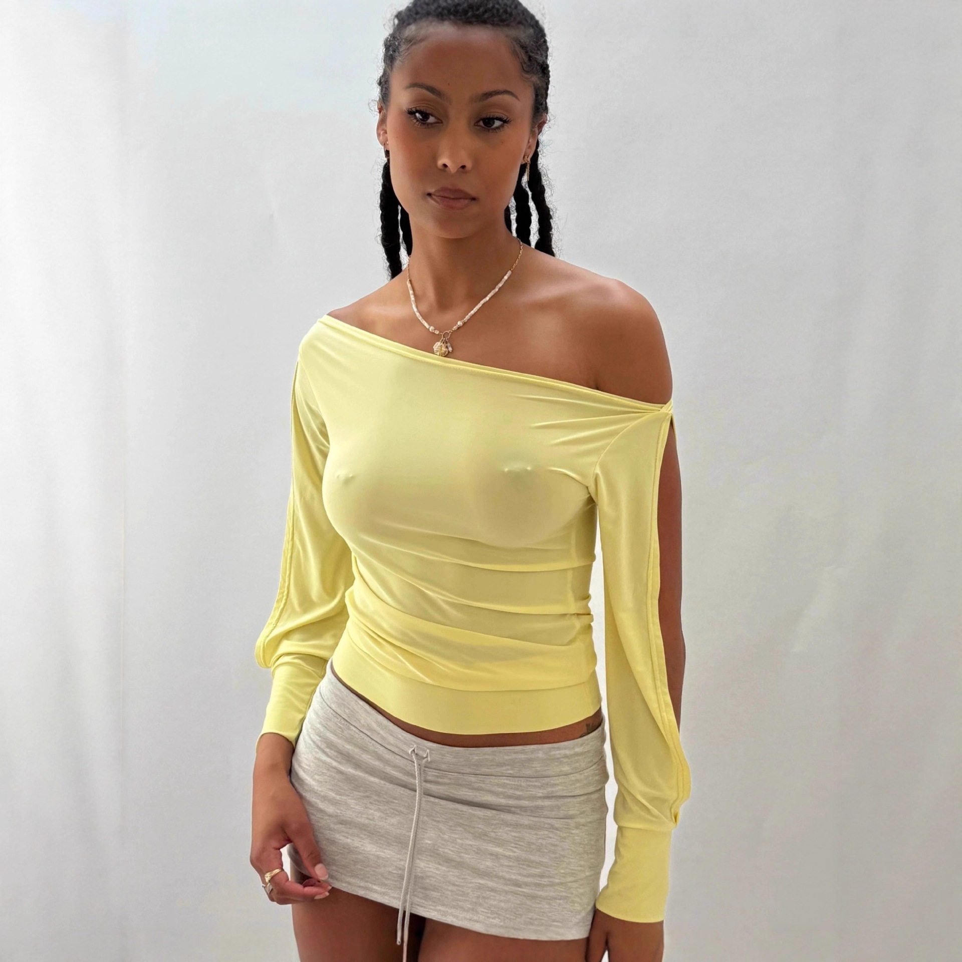 跨境欧美女装上衣女式t恤辣妹性感长袖一字肩套头打底衫女高级感