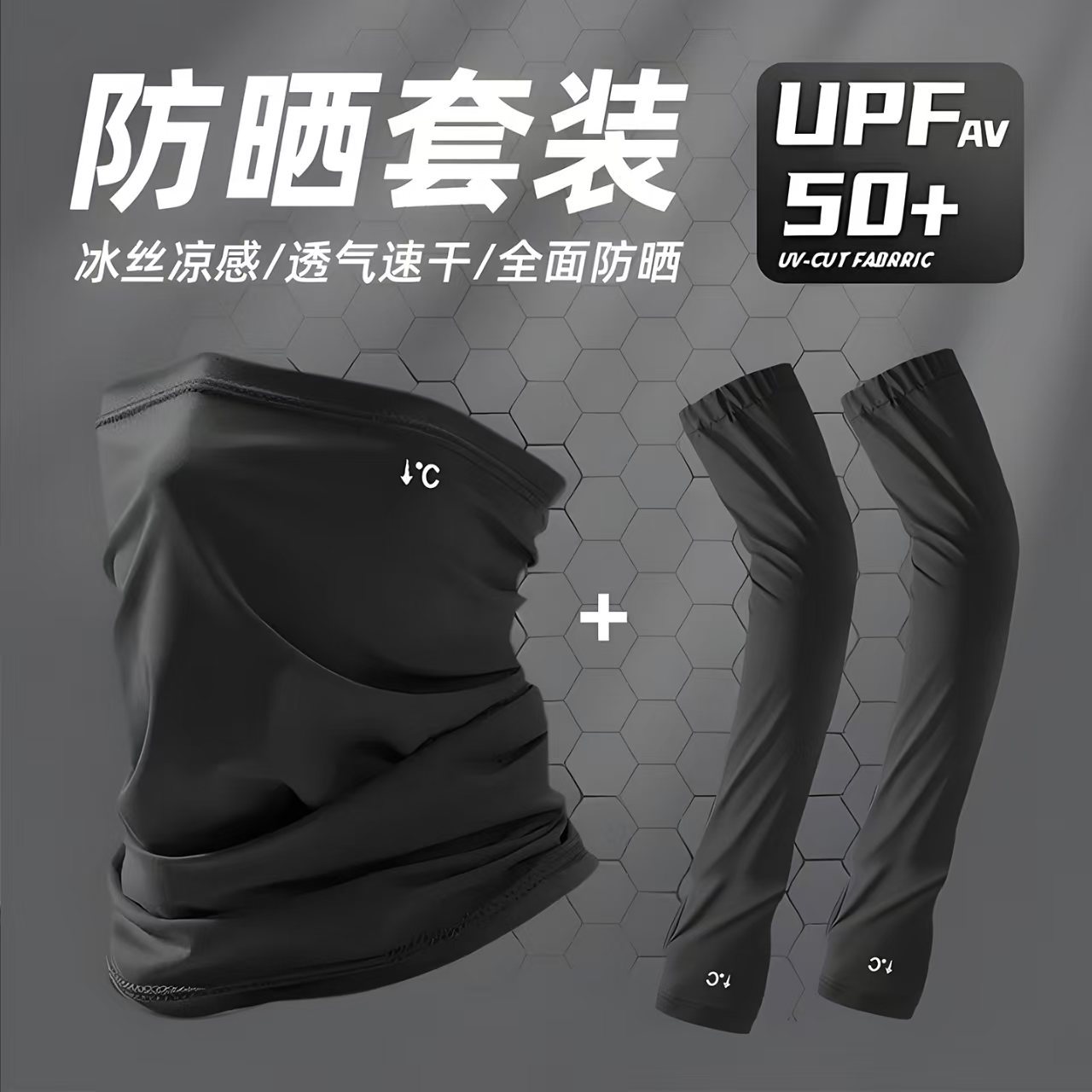 骑行遮脸护颈一体防紫外线面罩防晒男女同口罩户外透气冰丝三套装