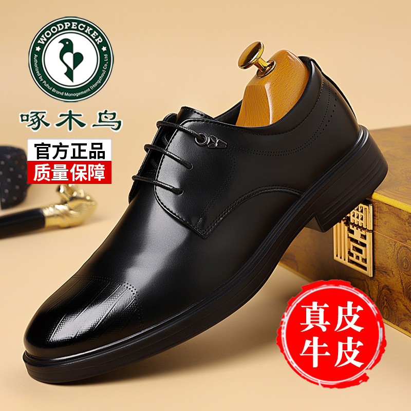 啄木鸟皮鞋秋季商务正装男鞋真皮舒适软底休闲单鞋结婚新郎德比鞋