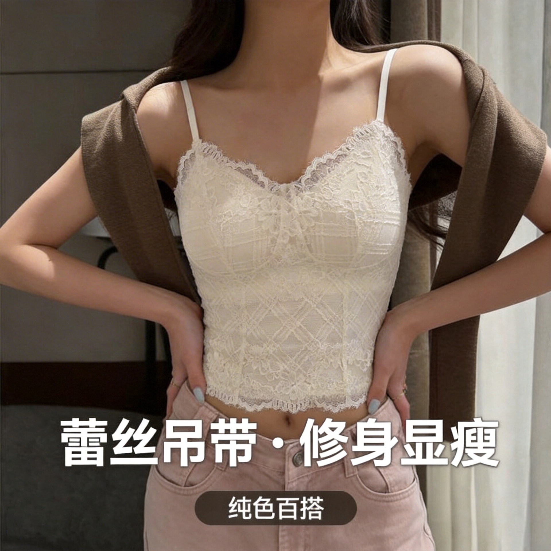 喵小言纯欲鱼骨款内搭外穿背心式内衣自带胸垫吊带性感修身吊带